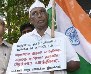 கன்னியாகுமரி மாவட்டம் மார்த்தாண்டம் அருகே டாஸ்மாக் கடையை மூட வலியுறுத்தி செல்போன் டவர் மீது ஏறி போராட்டம் நடத்திய சசிபெருமாள் உயிரிழந்தார்.அவருக்கு வயது 59.