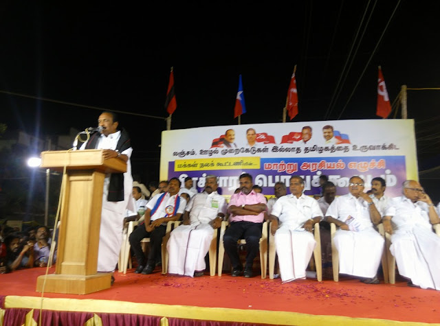 திருப்பூரில் நடந்த மக்கள் நலக் கூட்டணியின் மாற்று அரசியல் எழுச்சி பிரச்சாரத்தில் பல்லாயிரக்கணக்கான மக்கள் திரண்டனர். அதில் தலைவர்கள் சிறப்புரை நிகழ்த்தி, மக்கள் நலக் கூட்டணி ஆட்சிக்கு வந்தால் எந்த மாதிரியான திட்டங்களை நிறைவேற்றுவோம் என பட்டியலிட்டு விளக்கினார்கள். மக்கள் நம்பிக்கையோடிருந்தார்கள், வருகிற தேர்தலில் மக்கள் நலக் கூட்டணியை ஆட்சியில் அமர வைப்பார்கள் என்பதே நிதர்சனம்.