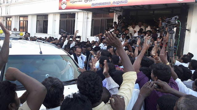 பின்னர் வாசனை அழைத்துக்கொண்டு தேமுதிக அலுவலகத்திற்கு சென்றனர். அபோது தெமுதிக தலைவரிடமும் பேசி 6 கட்சி தலைவர்களும் தொகுதி பங்கீடு செய்து கையெழுத்திட்டனனர்.