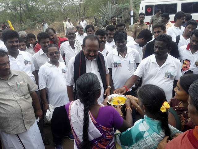 நியூட்ரினோ எதிர்ப்பு விளக்க நடைபயணம் போடிநாயக்கனூரிலிருந்து நரசிங்கபுரம் நுழையும் போது ஆரத்தி எடுத்து வெற்றி திலகமிட்டு வரவேற்றார்கள் தாய்மார்கள். தலைவர் வைகோ அவர்களுக்கும், உடன் வரும் வீரர்களுக்கும் இளநீர், மோர் கொடுத்து மகிழ்ந்தார்கள்.